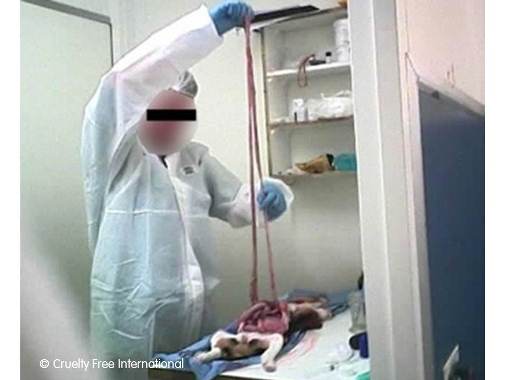 After being used in animal experiments, the puppies and kittens were killed and their bodies cut up. Our undercover video graphically shows the pitiful plight of these very young animals, including puppies becoming distressed and crying out during the taking of blood and lethal injections.